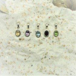 Sterling 925 zilveren hanger met 10 facet geslepen ronde edelstenen. De hanger bevat 2 citrien edelstenen van elk 4 mm groot, 3 peridoot edelstenen van elk 4 mm groot, 2 granaat edelstenen van elk 3 mm groot, 2 blauwe topaas edelstenen van 4 en 5 mm groot en 1 amethist edelsteen van 5 mm groot. De totale lengte van de hanger is 38 mm.