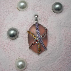 Zilveren multicolour hanger met 10 verschillende facet geslepen ronde edelstenen.