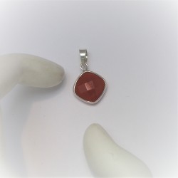 Sterling 925 zilveren hanger met facet geslepen, vierkante carneool edelsteen van 11 mm groot. De totale lengte van de hanger is 24 mm.