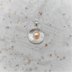 Zilveren hanger gevormd als een lelieblad met in het midden een zoetwaterparel. De hanger is 14 mm breed en zoetwaterparel is ongeveer 6 mm groot. De totale lengte van de hanger is 20 mm. De hanger is verkrijgbaar in 3 verschillende kleuren.